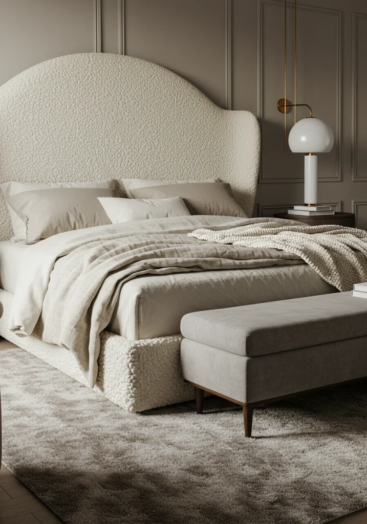 - Boucle: This nubby, looped fabric is incredibly popular and perfect for a headboard, an accent chair, or a pillow. It adds a soft, modern, and very cozy texture.