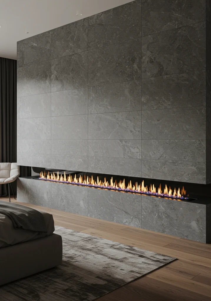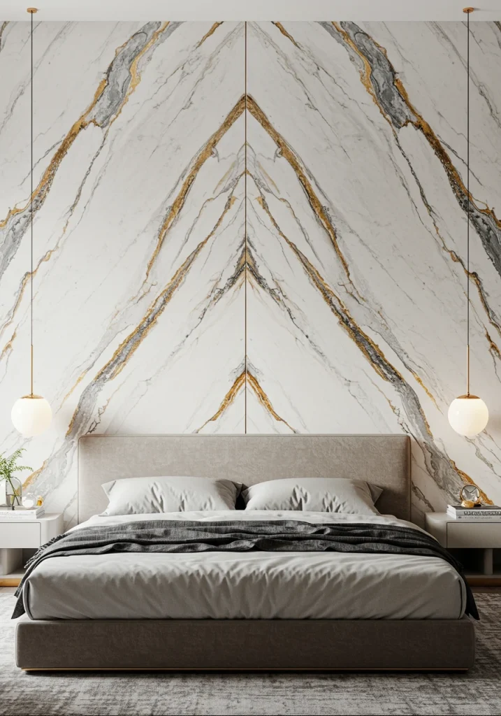 This is a true statement of luxury. I love to use a dramatic, veined marble or a more durable, look-alike porcelain slab to create a stunning feature wall behind the bed, or for the entire wall of a fireplace. As the experts at Architectural Digest showcase, the effect is incredibly powerful and sophisticated.