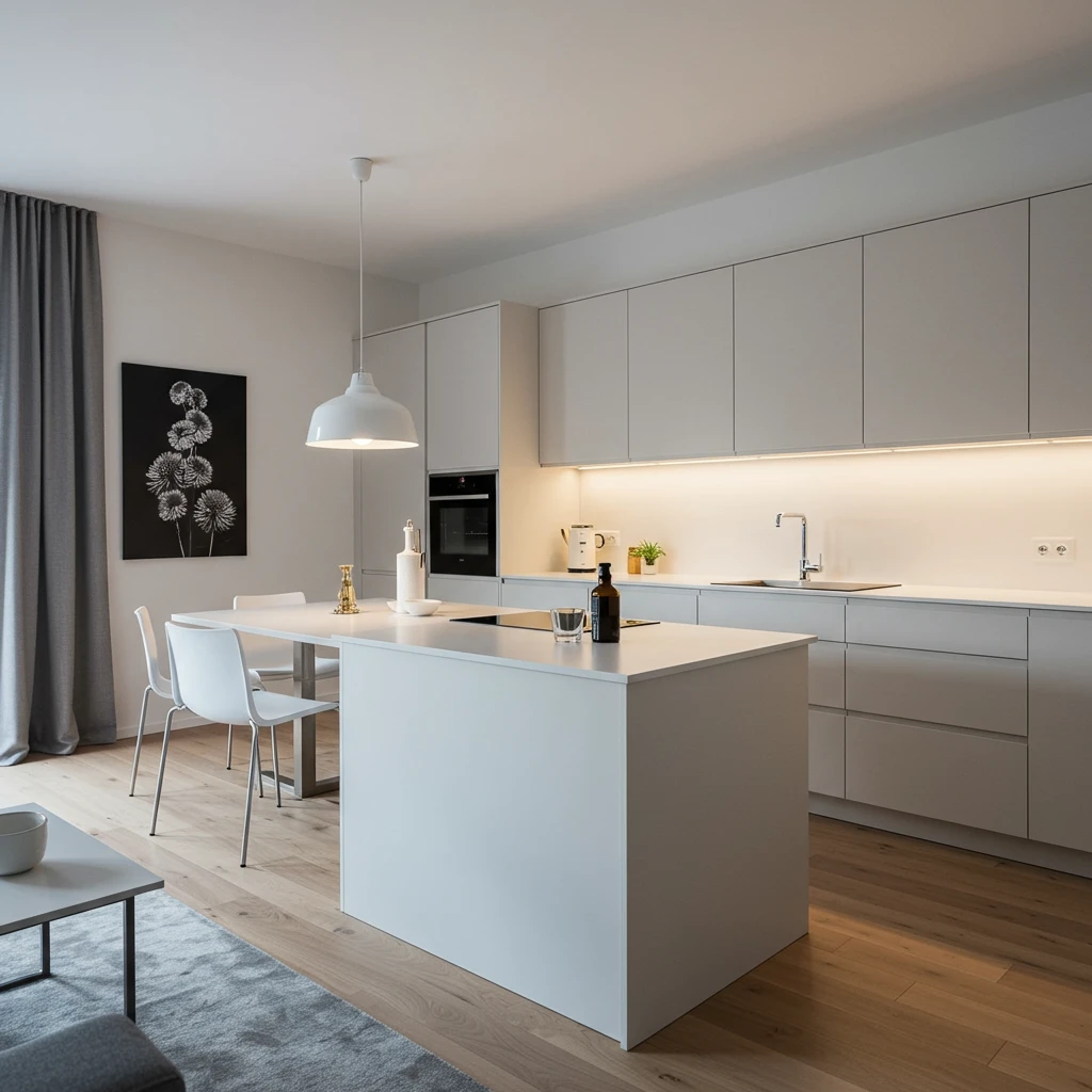 For 2025, the modern minimalist kitchen within an open concept embraces sleek design with integrated functionality, especially through lighting. Think clean lines, flush cabinetry, and subtle, integrated LED lighting that highlights functionality while contributing to a refined and uncluttered aesthetic.