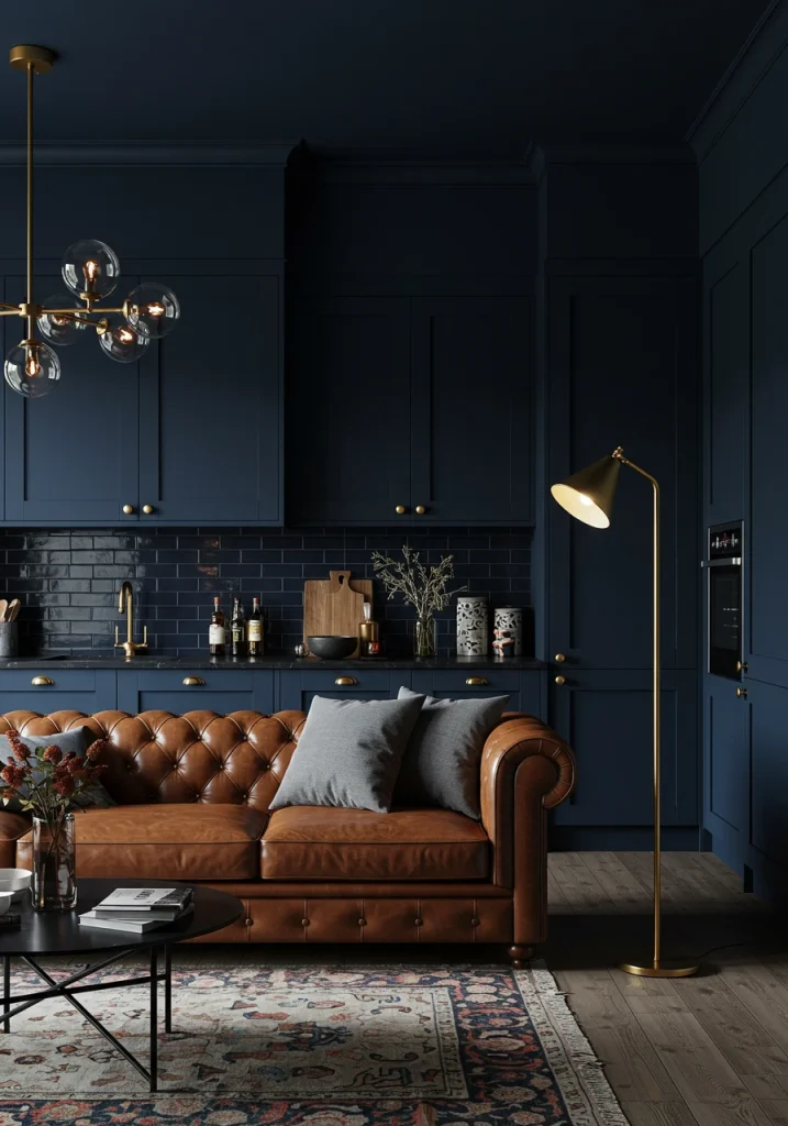 For a bold high-design look color drench the entire open-plan space. This means painting the kitchen cabinets the living room walls and all the trim in the same deep moody color (like a forest green or charcoal gray). This creates a dramatic enveloping and surprisingly cohesive jewel-box feel.