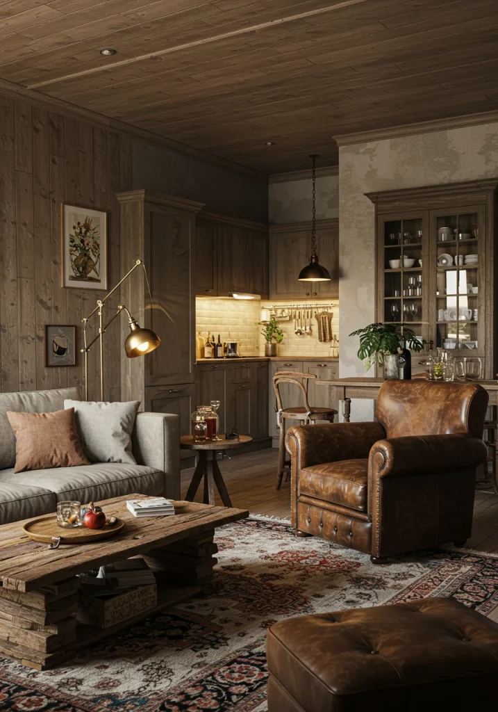 The 2026 modern look is collected not matchy-matchy. This idea involves confidently mixing new modern pieces with vintage or antique finds. Pair your sleek modern kitchen with a rustic reclaimed wood dining table and a vintage leather armchair in the living room.