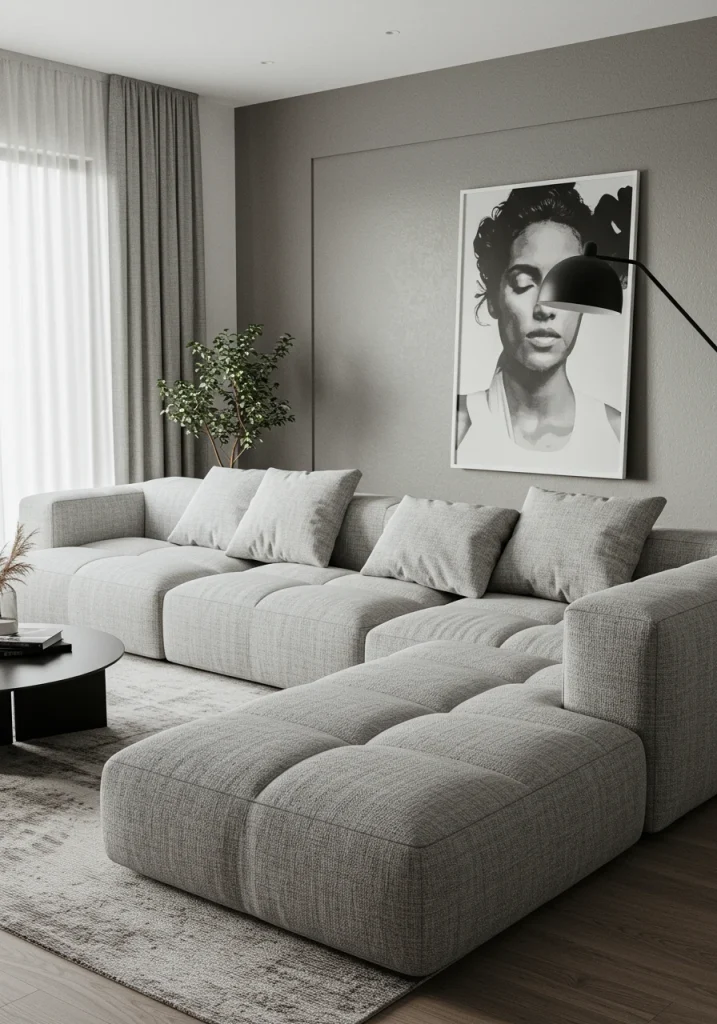 The low-profile sofa (which sits closer to the ground) is a key 2026 trend that creates a relaxed lounge-like feel and keeps sightlines open. A modular sectional made of individual rearrangeable pieces offers the ultimate in flexibility for a modern multi-functional living space.