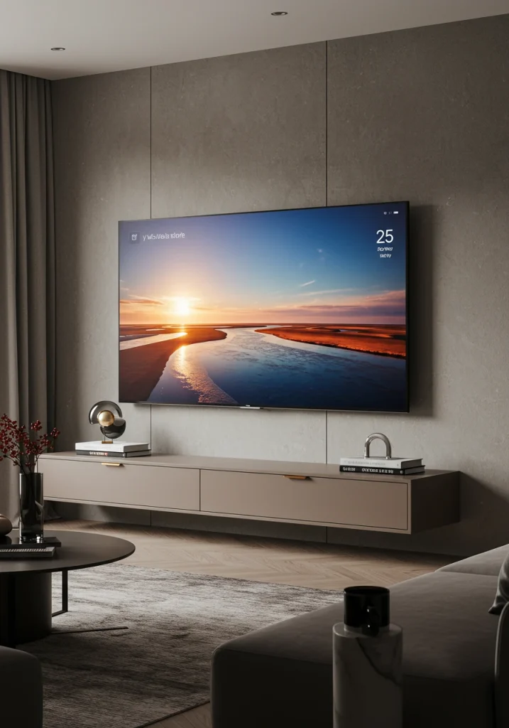 A key smart design trend for a modern living room. A large black TV screen can be a visual black hole that ruins the stylish vibe. An Art TV (like the Samsung The Frame) is a game-changer. When off it displays a beautiful piece of art with a matted frame making your TV disappear into your decor.