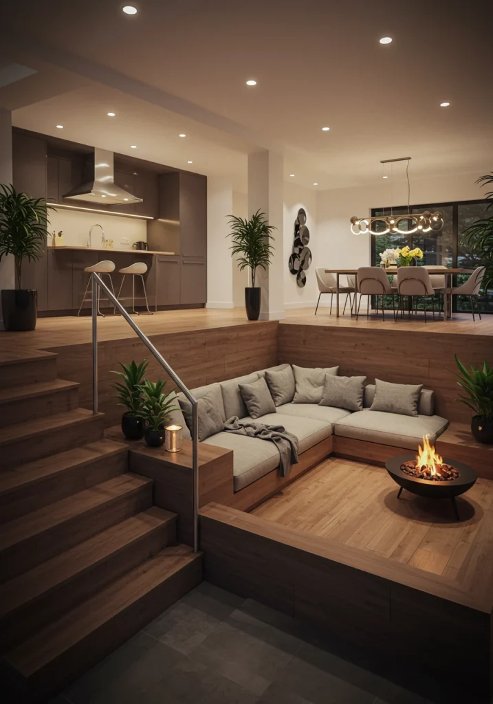 27. The Sunken Living Room “Pit” (2026 Trend)