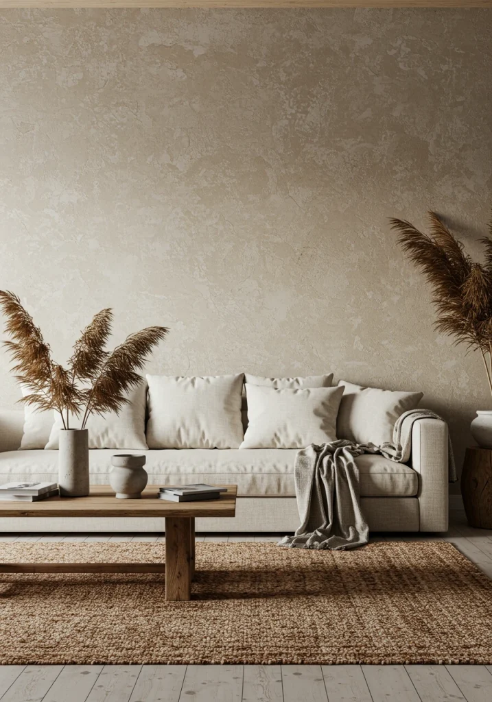 A major 2026 Organic Modern trend. A makeover with a textural wall finish like Roman clay or limewash (as seen in your reference images) provides a soft chalky and cloud-like texture. This adds a stunning organic and sophisticated depth that creates a cozy wabi-sabi feel.