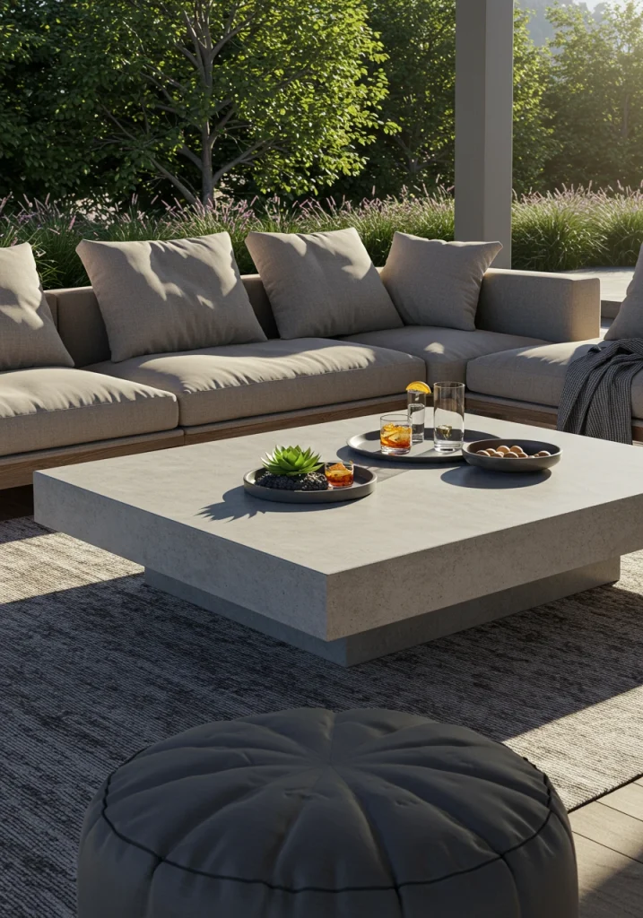 - Durable Materials: Concrete, teak, reclaimed wood, or powder-coated aluminum.