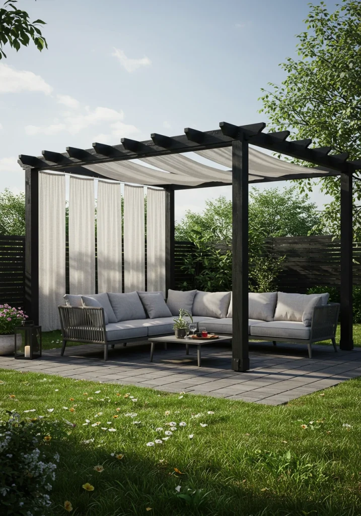 To make your outdoor living space feel more like an intimate and enclosed room, it’s essential to define the space from above. A pergola, a gazebo, or a series of modern shade sails can create a “ceiling” that provides a sense of enclosure, offers welcome shade from the hot sun, and serves as a structure from which to hang lighting and plants. This architectural element is key to transforming an open patio into a defined outdoor room.