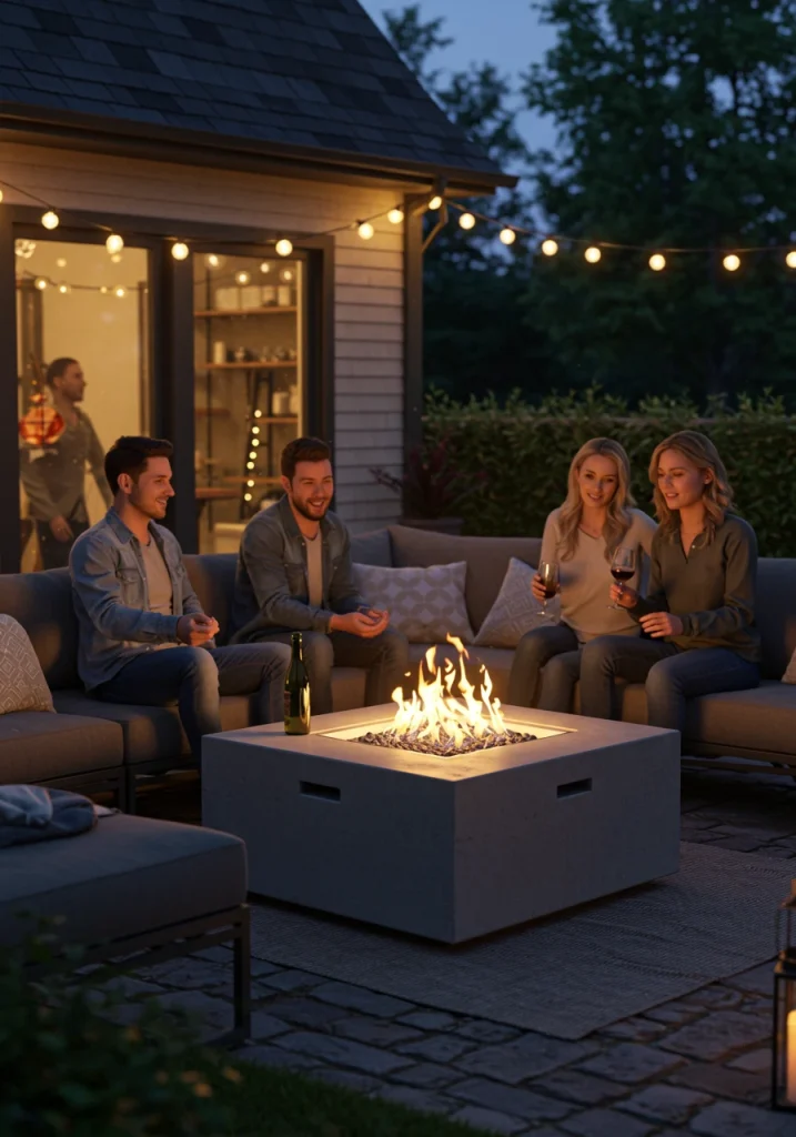 A fire pit is the ultimate focal point for an outdoor living room. It provides warmth on chilly evenings, a mesmerizing, flickering light source, and a natural gathering spot that encourages conversation and connection. A fire feature instantly makes an outdoor space feel cozier and extends its usability into the cooler spring and fall months. It becomes the outdoor equivalent of the indoor fireplace.