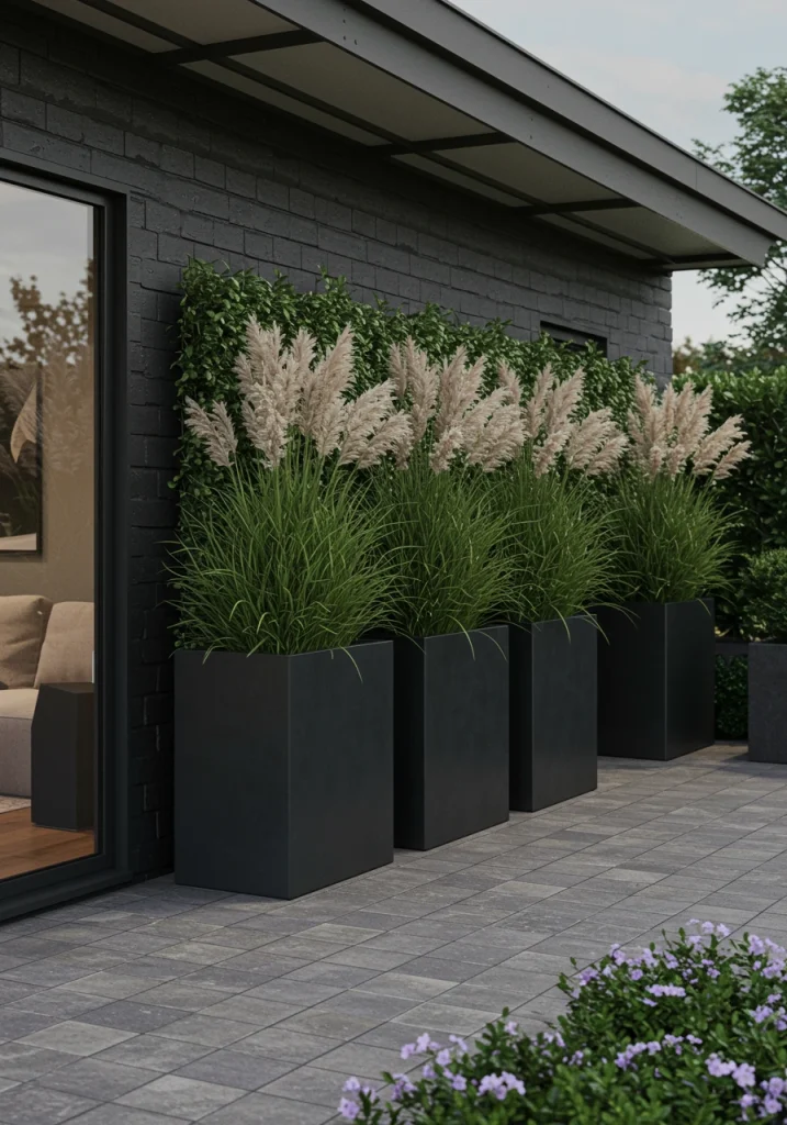 I often use this technique in large, open backyards to create a more intimate feel for the living room zone without building a permanent wall. A row of tall, rectangular planters filled with slender, upright plants like arborvitae or ornamental grasses can create a very effective and beautiful screen. The planters themselves can be a major style statement.