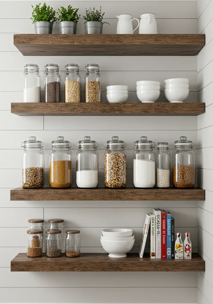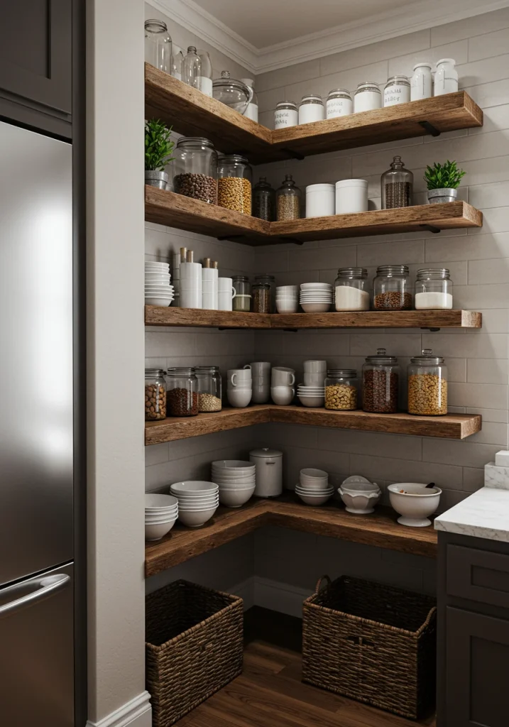 The Open-Shelving Pantry Nook: For a more informal look, use an open nook or alcove with stylish floating shelves.