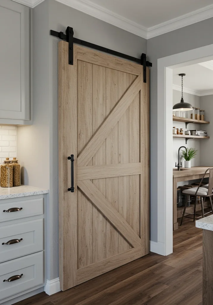 The Charming Barn Door: A sliding barn door saves space and adds a huge amount of rustic, farmhouse character.