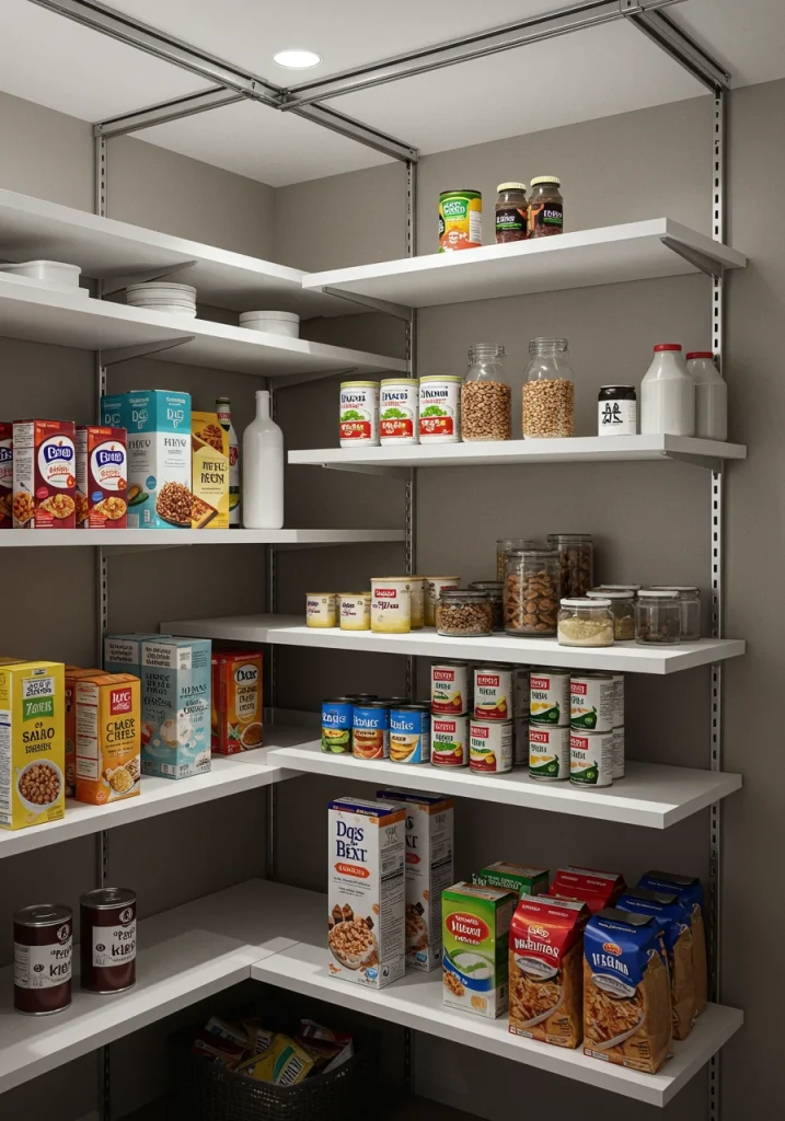 Shallow Shelving for Cans: Use shallower shelves (6-8 inches) for a single row of cans or jars so nothing gets lost in the back.