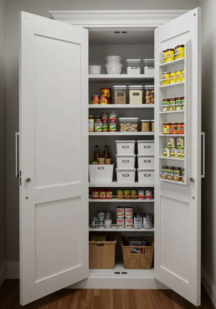 The Reach-in Closet Pantry: A shallow closet fitted with floor-to-ceiling shelves, a common and highly functional solution.