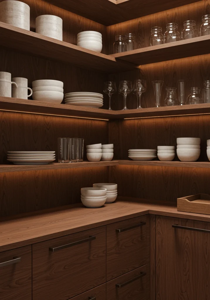 Corner Solutions: Use turntables (Lazy Susans) or custom corner shelves to make awkward corners fully accessible.