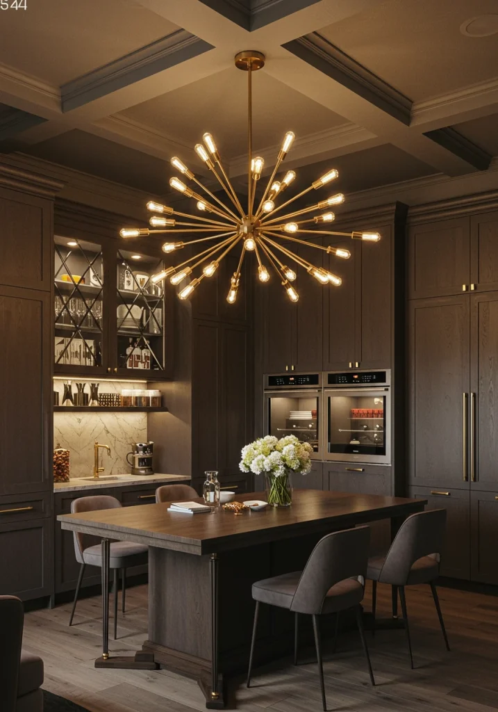 A Statement Pendant Light or Chandelier: A beautiful light fixture can make a walk-in pantry feel like a special room.