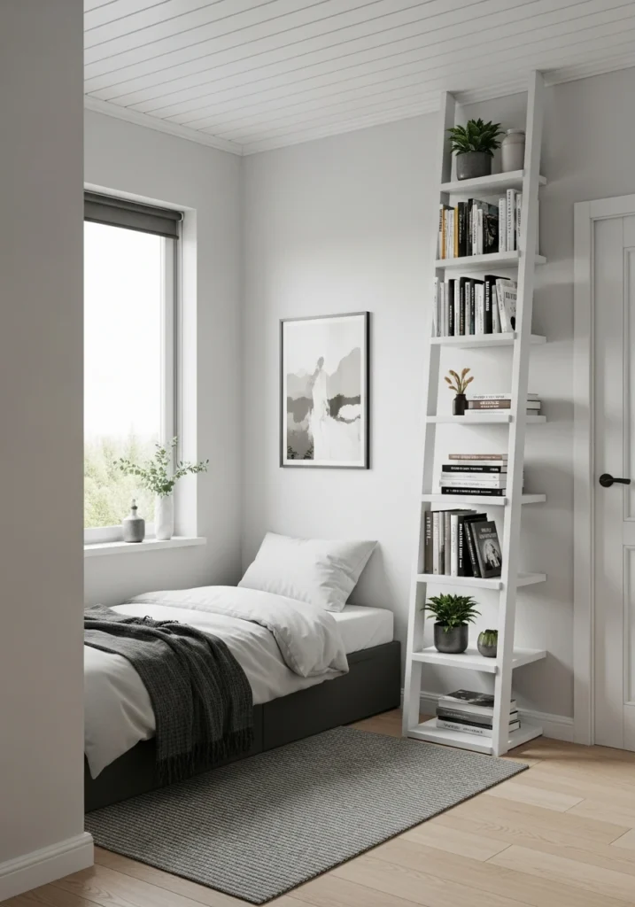 When you can’t build outwards, build upwards. Use your vertical space for storage and to draw the eye up, making the ceiling feel higher. A tall, narrow, “ladder-style” or “spine” bookshelf can hold a huge number of items while taking up a tiny, floor, footprint.