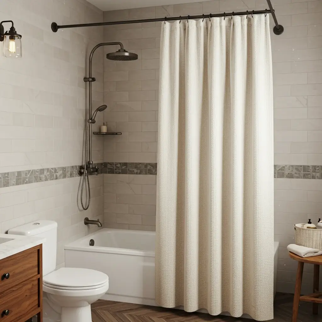 - Shower Curtain: Heavy, high-quality fabric like waffle-weave cotton or linen.
