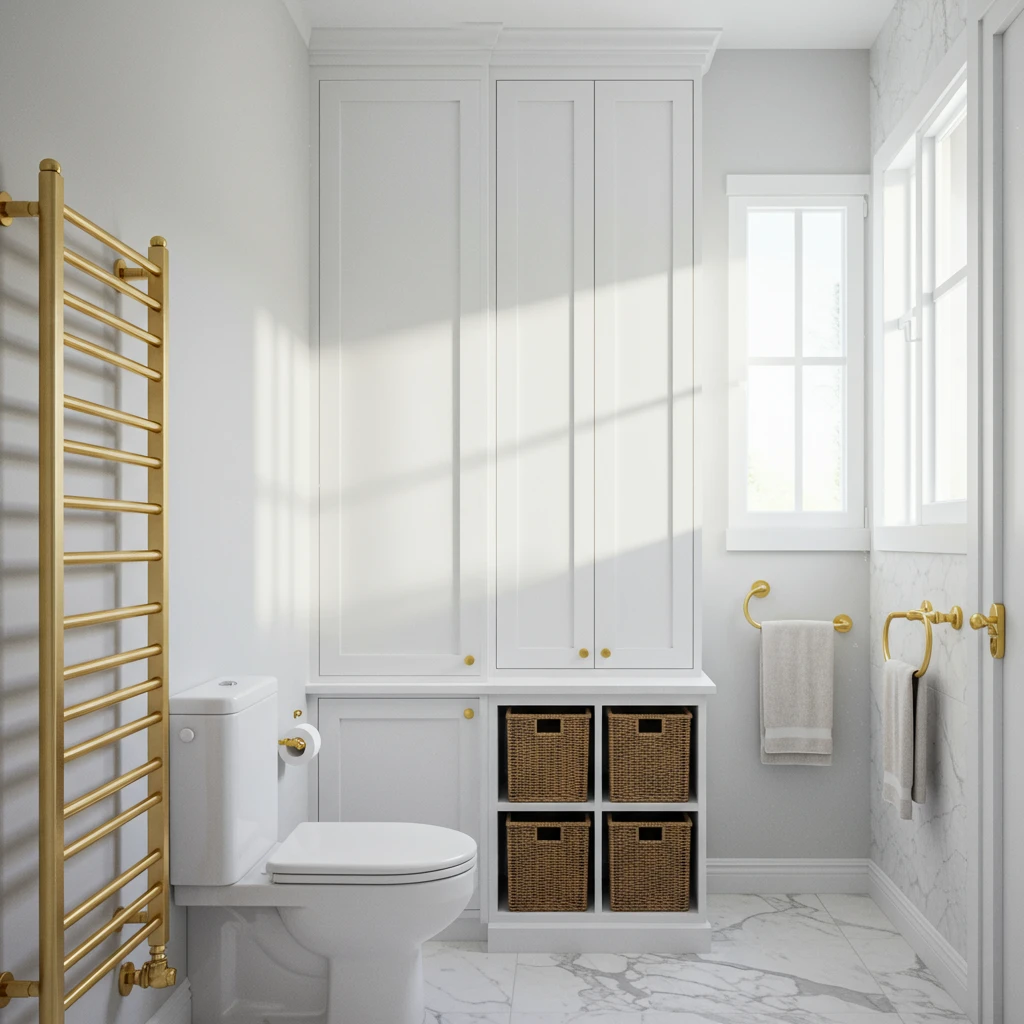 - Tall Linen Towers: Look for freestanding, slender cabinets designed for compact spaces. A width of 12-15 inches can be surprisingly spacious.