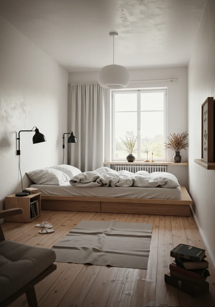 Traditional, bulky nightstands can eat up a lot of floor space and make the area around your bed feel cramped. A brilliant, space-saving solution for a tiny bedroom is to use floating, or wall-mounted, nightstands or simple shelves. By lifting your bedside storage off the floor, you create a sense of lightness and airiness, and you make the room feel larger because more of the floor is visible.