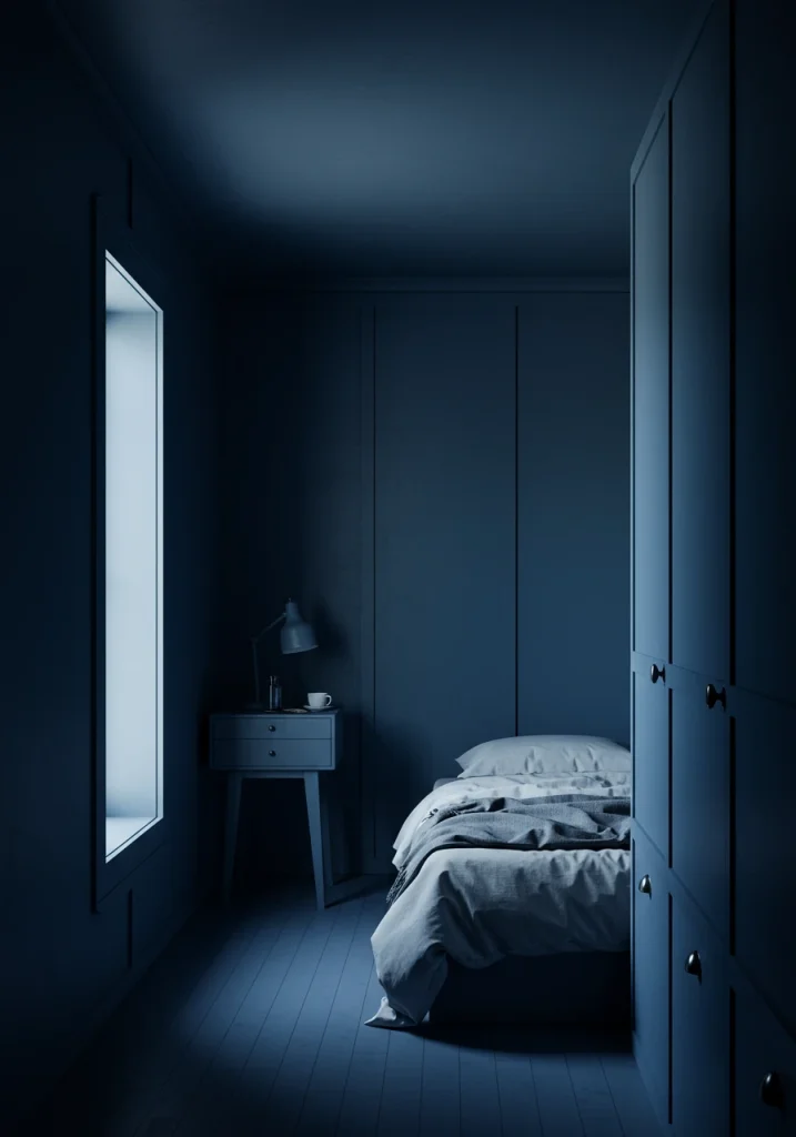 This is a wonderfully counter-intuitive but incredibly sophisticated and effective trick for a tiny bedroom. “Color drenching” means painting the walls, the trim, the doors, and even the ceiling all in the same color. By eliminating the high-contrast lines of traditional white trim, you blur the architectural boundaries and corners of the room. This can trick the eye and make a small space feel larger, more seamless, and more serene.