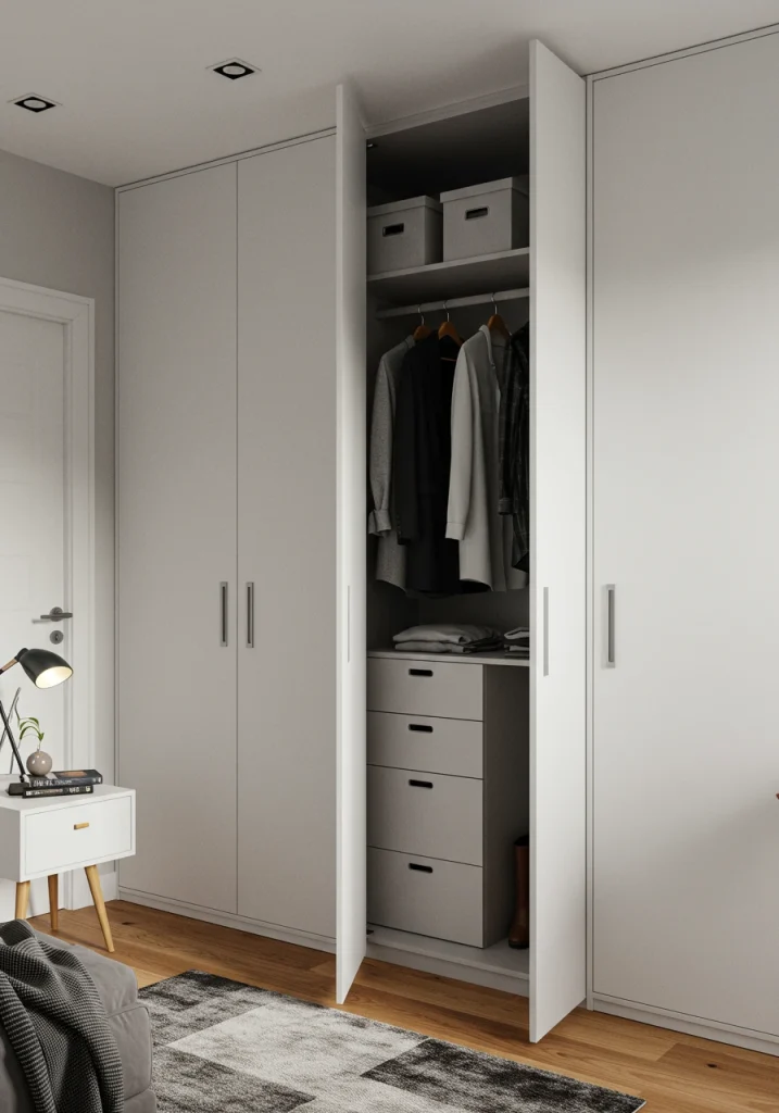 • Space-Saving: Can be shallower than a freestanding wardrobe, and a wall-to-wall installation has a custom, built-in look.