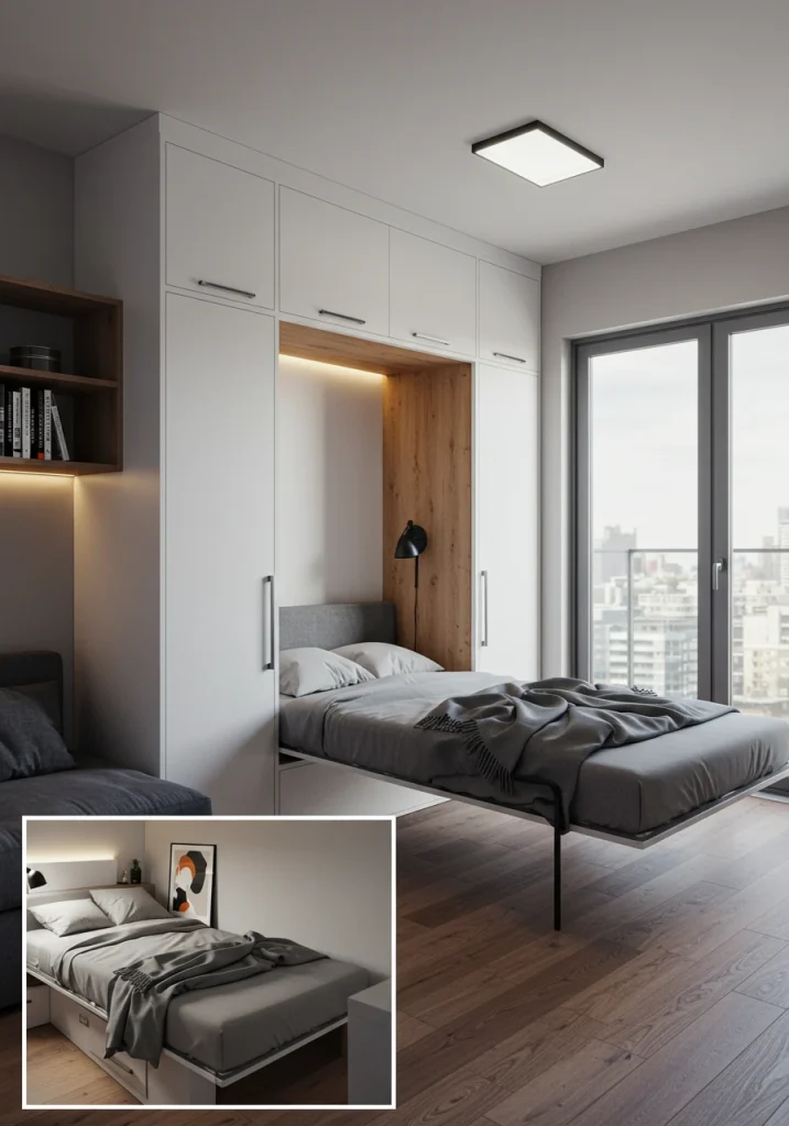 This is the most dramatic, space-saving piece of furniture you can own. It allows you to have a full, comfortable bed for sleeping, and then to completely reclaim all of that floor space during the day for other activities. I have designed many studio apartments where a modern, stylish Murphy bed is the key to making the small space truly livable.
