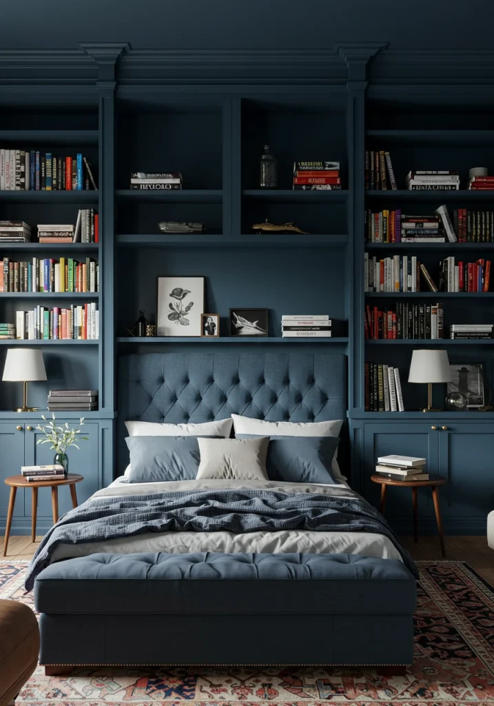For the book lover, a floor-to-ceiling, built-in bookshelf is the ultimate accent wall. It’s a feature that is both incredibly functional, providing a huge amount of storage, and deeply beautiful, creating a warm, intelligent, and textural backdrop for your bedroom. A wall of books can make a room feel incredibly cozy, scholarly, and full of character.