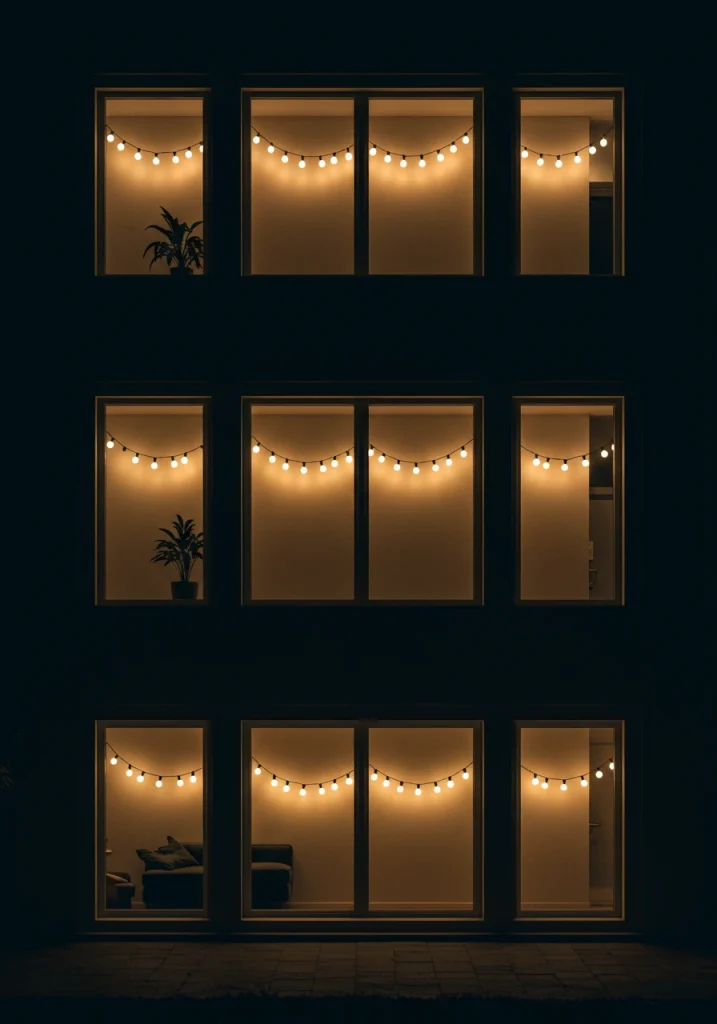 - The Placement: Hang a single, perfectly straight, horizontal strand of lights across the center of your window, or at the level of your window’s meeting rails.
