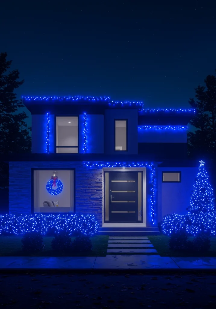 For an enhancement, if you have a home with a very modern, architectural style, an all-cool-white light display can be incredibly chic and will beautifully highlight the clean lines and the geometric forms of your house.