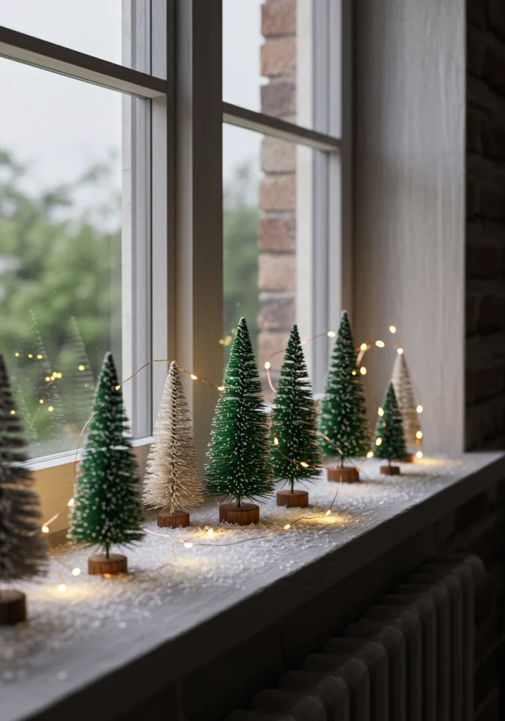 Your windowsills are the perfect, ready-made stage for a beautiful, festive display. A well-styled windowsill can add a huge amount of Christmas cheer without taking up any space in your room. The key to a beautiful look is to create a curated, little “vignette” or a miniature, wintery scene.