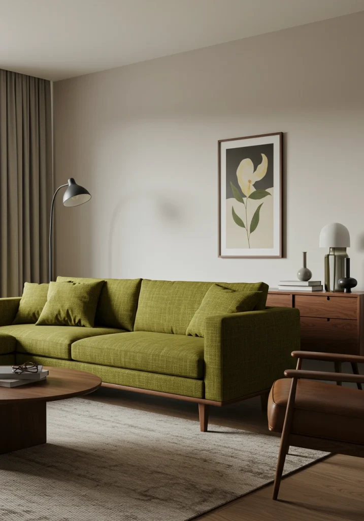 A rich, deep olive green is a sophisticated, earthy, and very on-trend color for a living room. It has a beautiful, complex, and slightly retro, mid-century modern feel. It’s a color that is deeply connected to nature but has a more complex, muted quality than a brighter green. It can create a look that is both cozy and very chic.