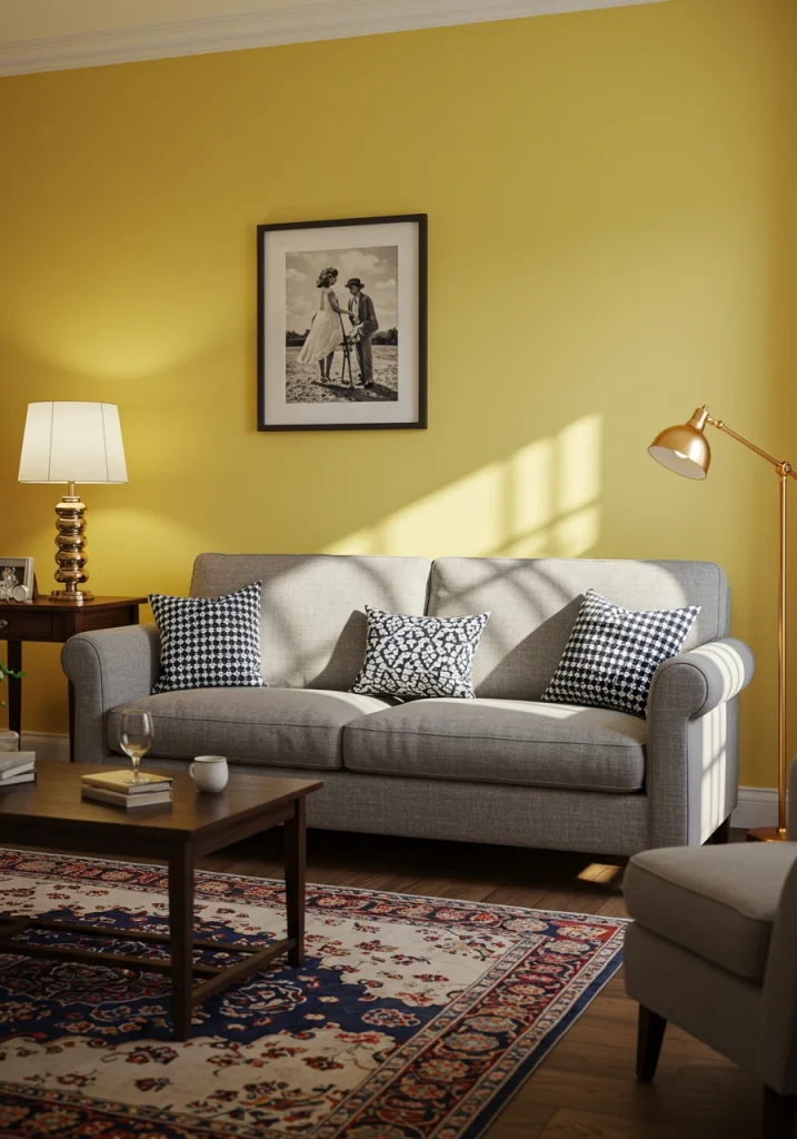 For a living room that is full of cheerful, optimistic, and welcoming energy, a warm, sunny yellow is a fantastic choice. A soft, buttery yellow on the walls can make a room feel like it is filled with sunlight, even on a cloudy day. It’s a color that is inherently happy and is wonderful for a family living room.