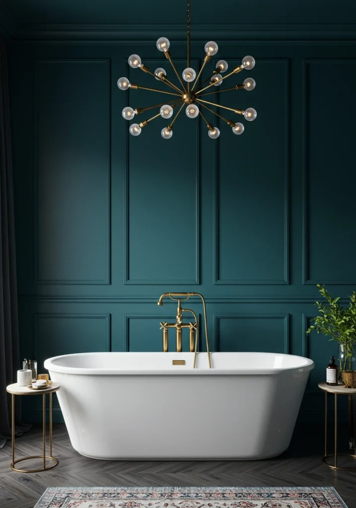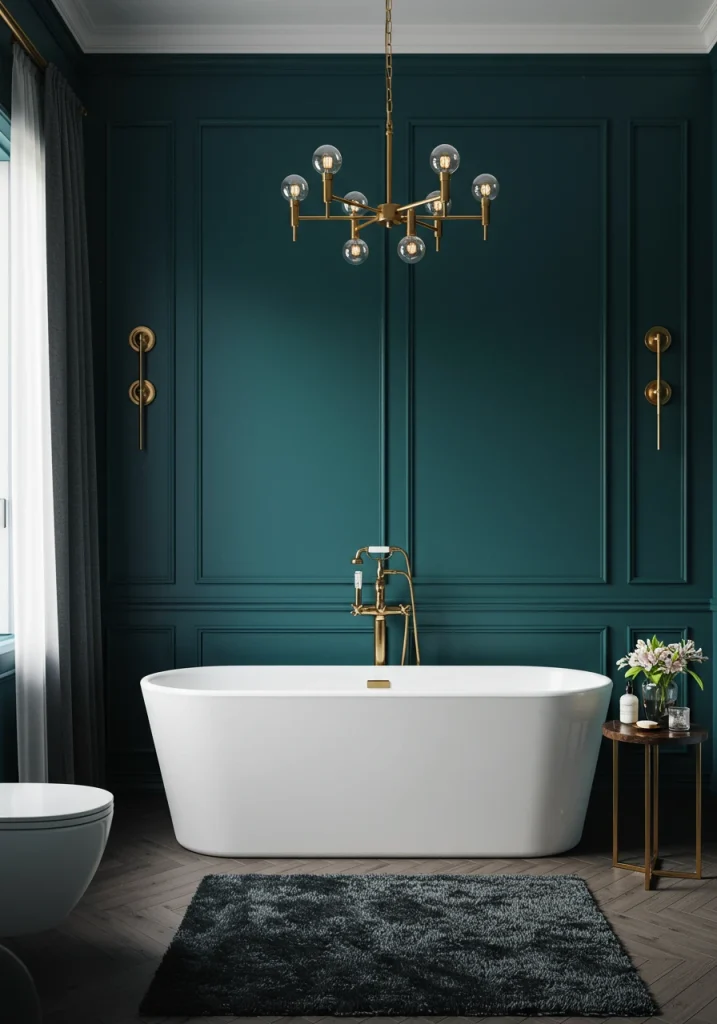 For a bold, dramatic, and deeply luxurious bathroom, a rich, moody teal is a stunning and on-trend choice. Teal is a complex and sophisticated color that sits beautifully between blue and green. A deep, saturated teal can create an enveloping, jewel-box-like feel that is perfect for a powder room or a master bathroom where you want to make a dramatic statement.
