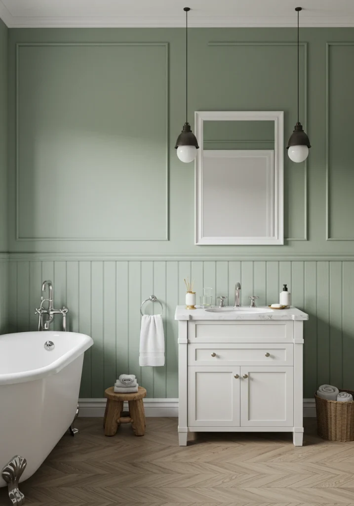 For an enhancement, use a slightly different paint finish for some of the elements. For example, in a room where the walls are a matte, sage green, you could paint the vanity in a high-gloss version of the exact same sage green. The contrast in sheen is very subtle and chic.