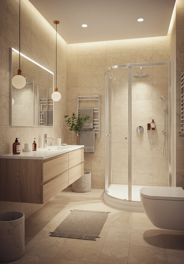 A warm, earthy, and sandy beige is a top trend for creating a bathroom that feels like a serene, natural spa. As your reference photos show, this is a color that has incredible warmth and an organic quality. It pairs beautifully with other natural materials like light wood and stone. This is a move away from cooler grays and towards a palette that is more grounding and connected to nature.