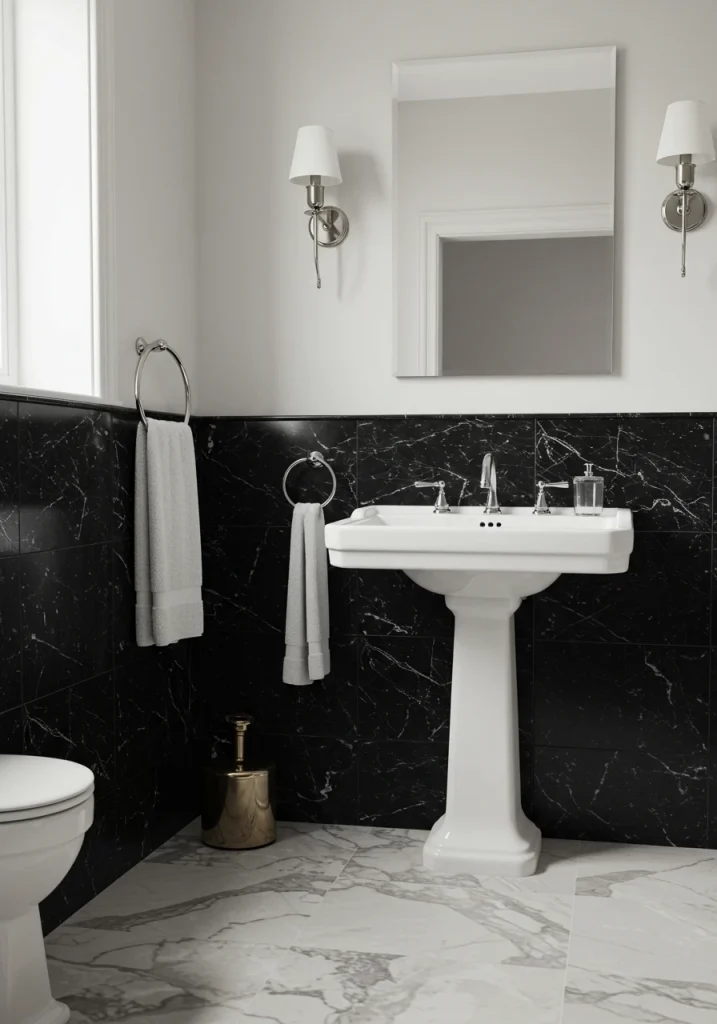 • Best For: Creating a high-contrast, dramatic, and elegant bathroom.