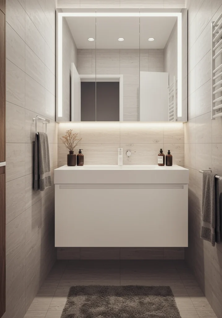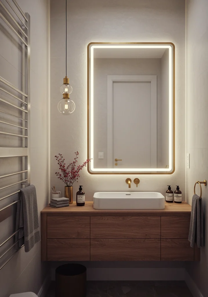 For a cohesive and high-tech enhancement, choose a backlit mirror that allows you to adjust both the brightness and the color temperature of the light, from a cool, bright white for the morning to a warm, dim glow for the evening.