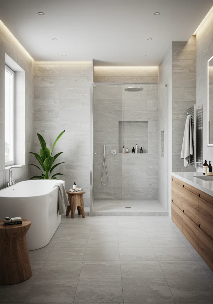 1. The “Wet Room” Layout and Curbless Showers