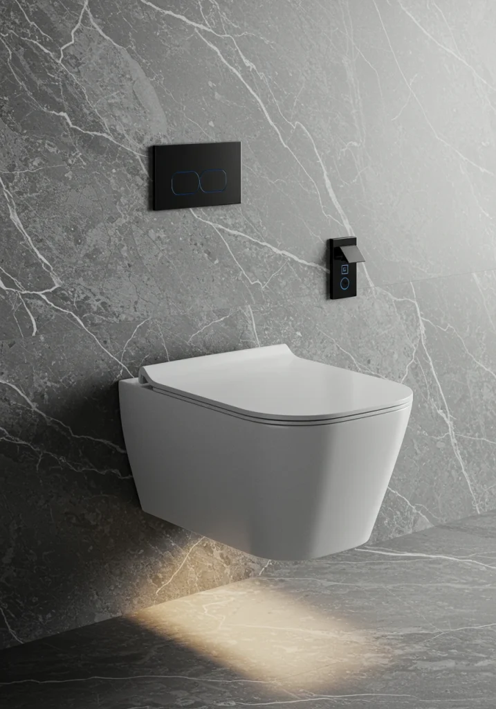For a high-end, cohesive enhancement, choose a toilet with a matching, sleek, wall-mounted flush actuator plate in a finish (like matte black or brushed brass) that matches the other fixtures and hardware in your bathroom.