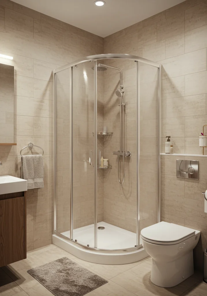 - Curved Showers: A shower with a curved, glass door can be a great, space-saving solution for a corner.