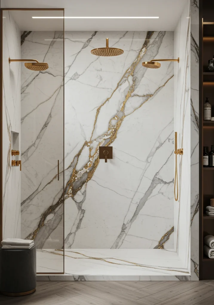 For the ultimate, jaw-dropping enhancement, use a “book-matched” set of two slabs for your main shower wall. This is where two slabs are cut and polished to be a near mirror-image of each other, creating a stunning, symmetrical pattern with the stone’s natural veining.