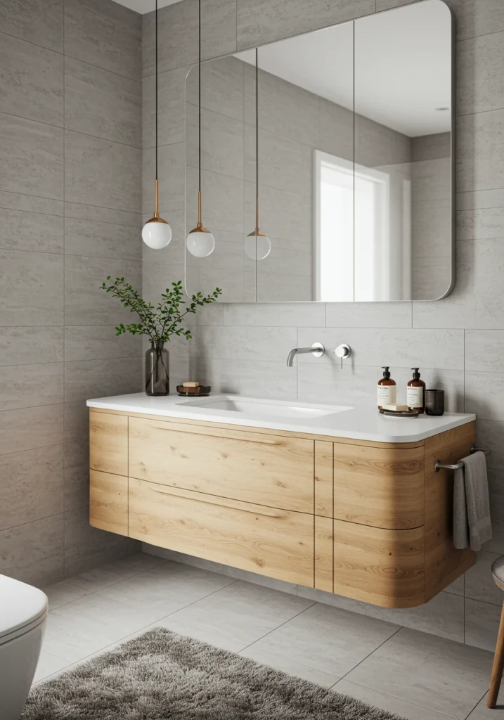 - Wood Tones: Light, natural oak for a Scandinavian or spa-like feel; a richer, mid-toned walnut for a sophisticated look.