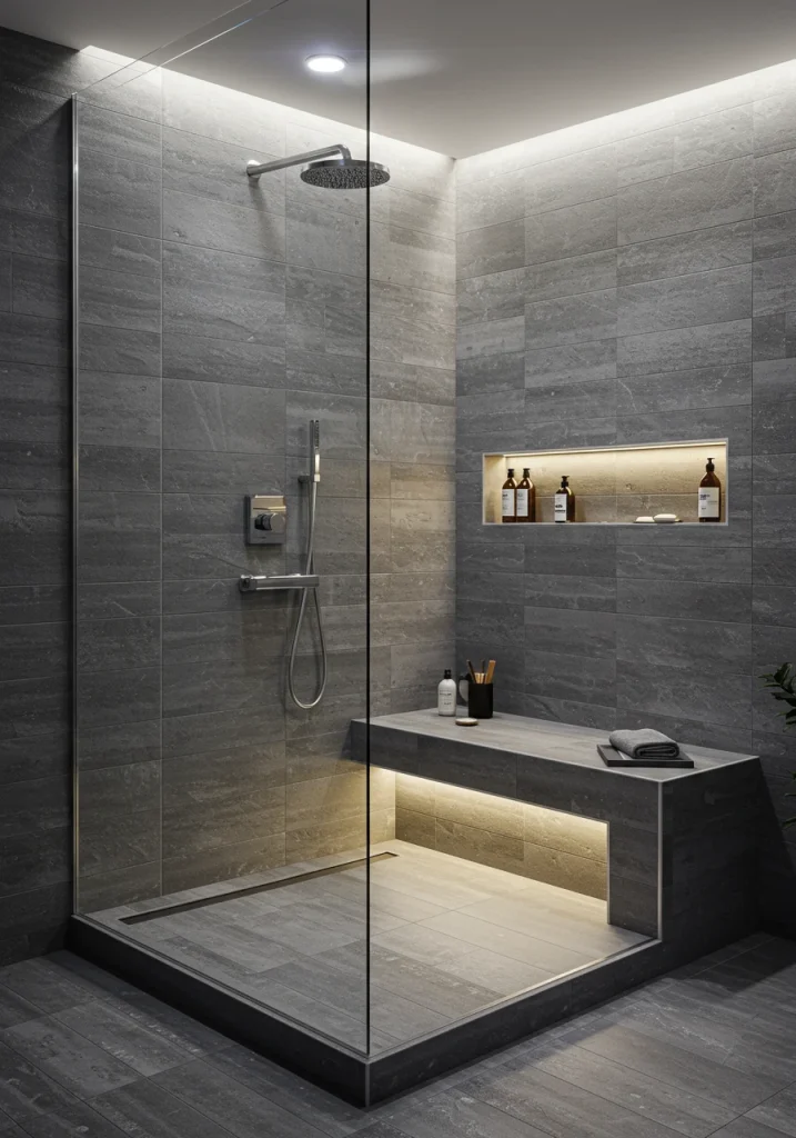 - Custom Look: A bench that is built-in and tiled or clad in a stone slab to match the rest of the shower feels like a seamless, architectural feature.