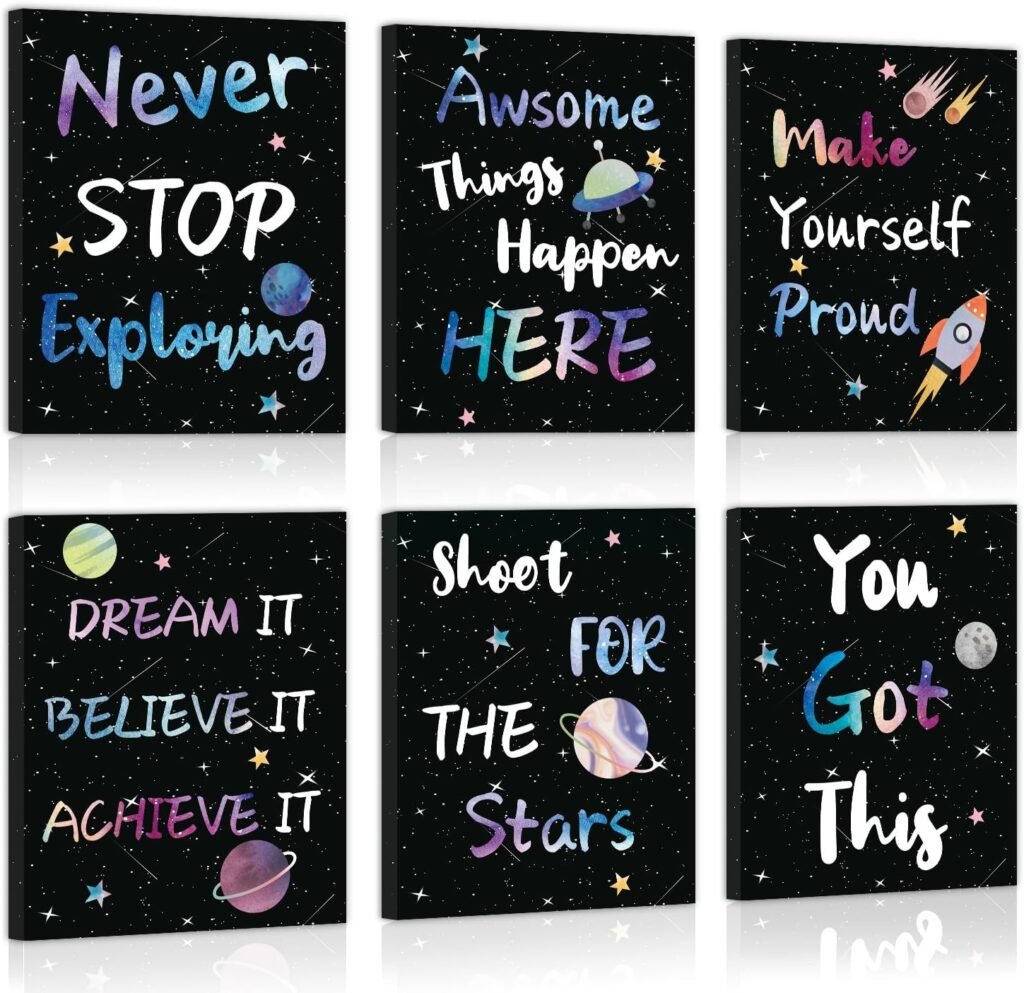 CHDITB Outer Space Framed Canvas Wall Art, Universe Theme Artwork, Inspirational Quote Wall Decor, Stellar Sky Poster, Galaxy Universe Art Prints For Kids Room, Boy Bedroom Classroom Decor(8X10 Inch)