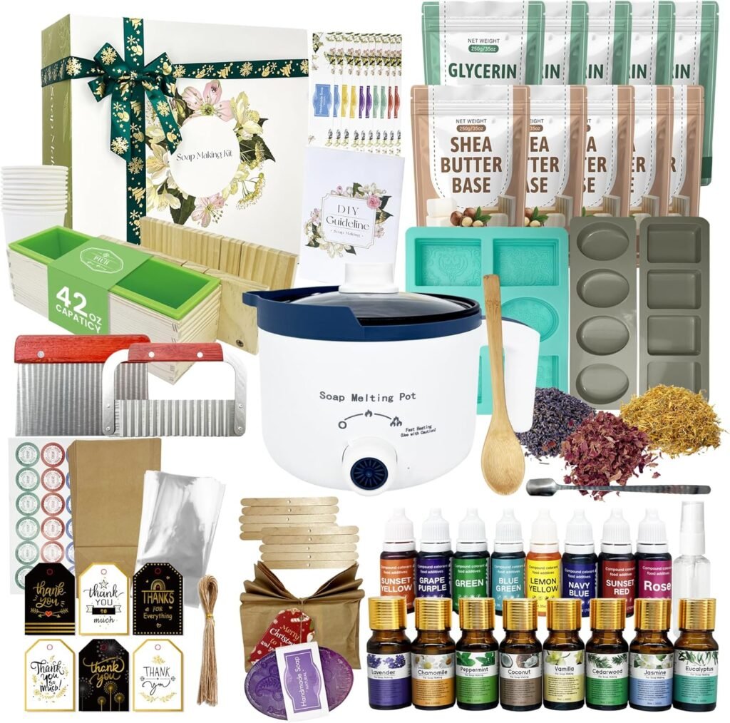 PIUH Deluxe Soap Making Kit for Soap Making,DIY Soap Making Full Set Kits Includes Soap Melter,4 lb Soap Base,8 Essencial Oils,Silicone Loaf Molds & Scraper,Cutter, 8 Dyestuffs for Adult & Kids Gift